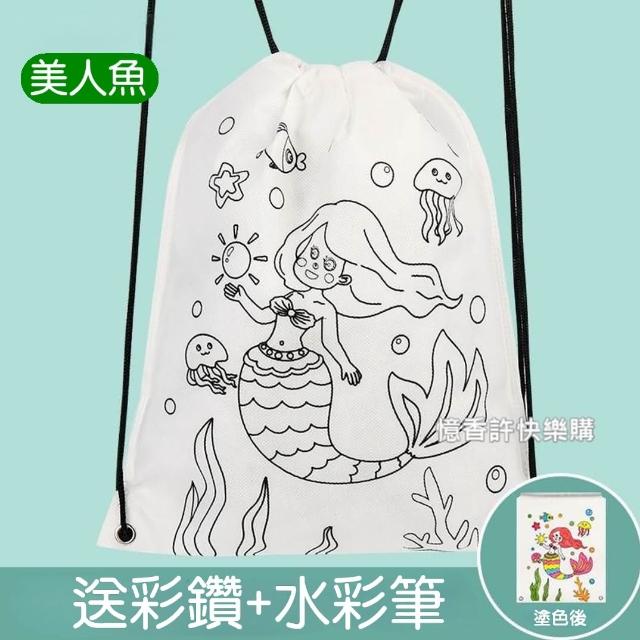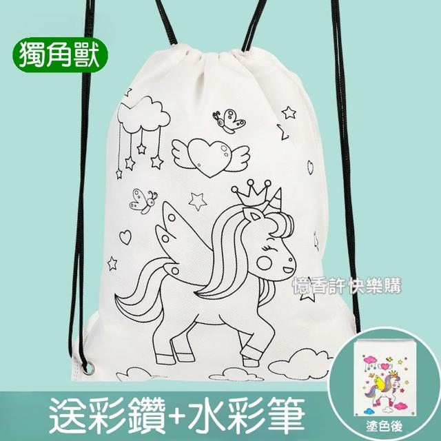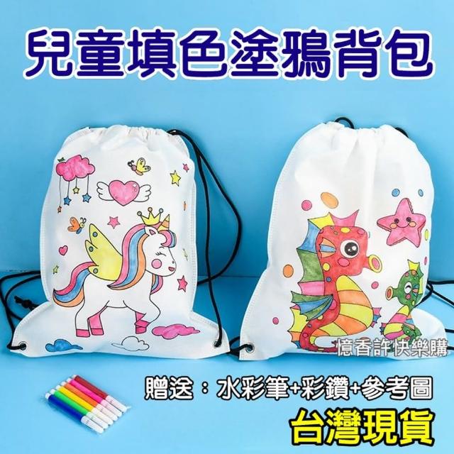 憶香許快樂購 兒童 塗鴉 帆布背包 DIY 繪畫 帆布袋 空白 填色 手工材料包 塗色 玩具(帆布背包 DIY 繪畫 帆布袋 填色 手工材料包 塗色)