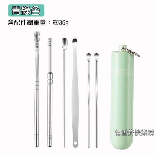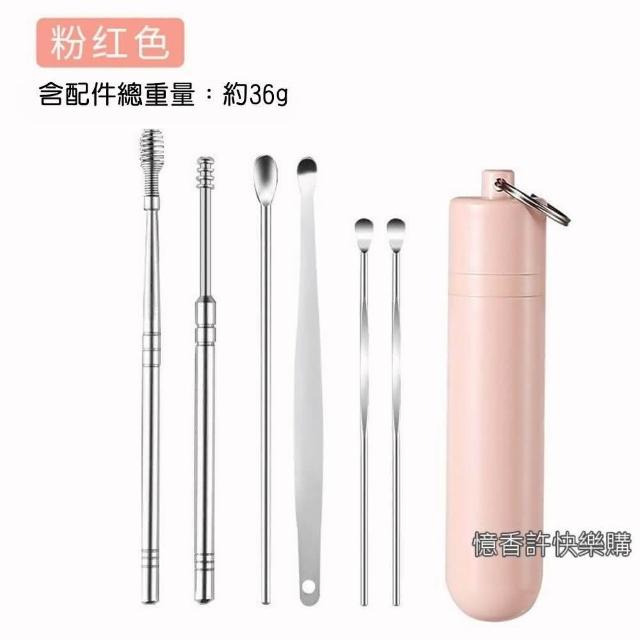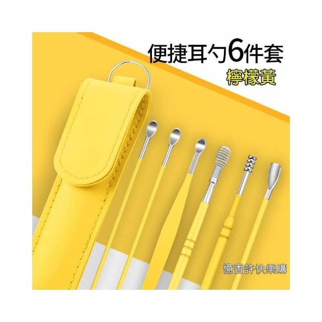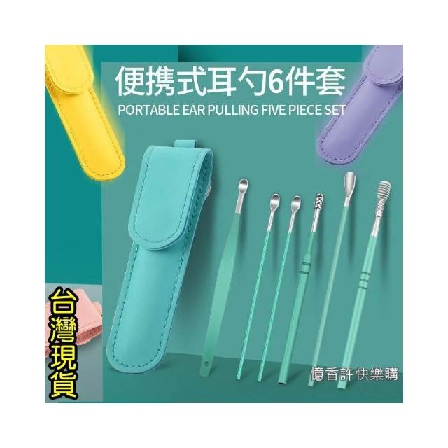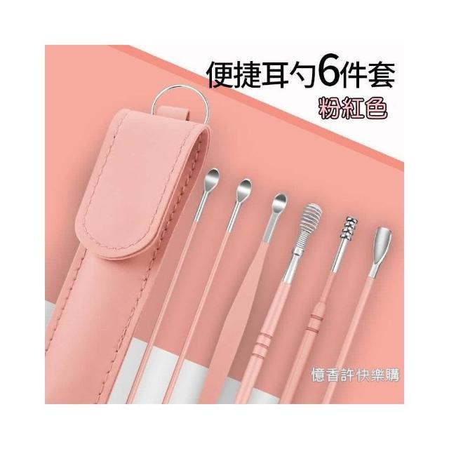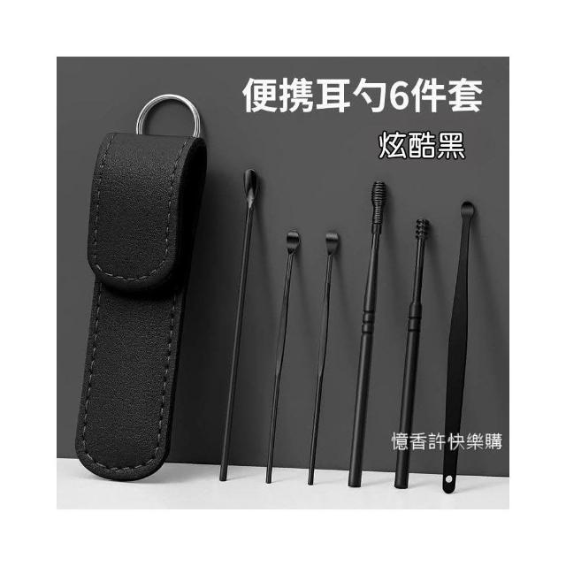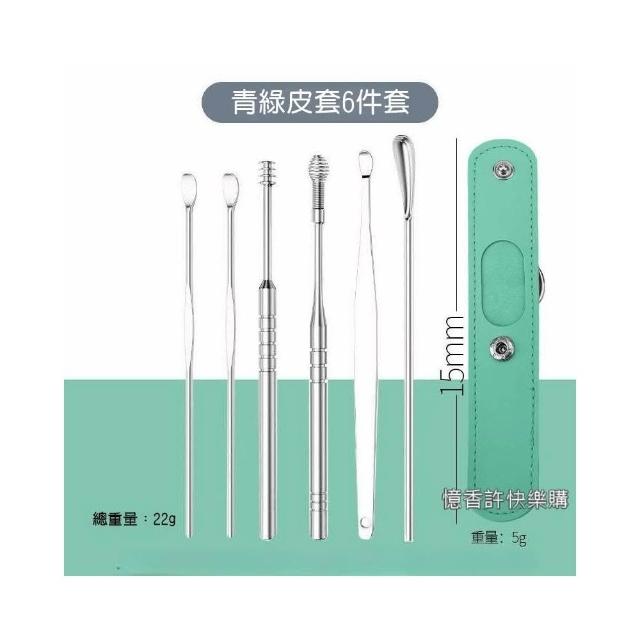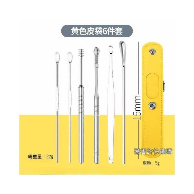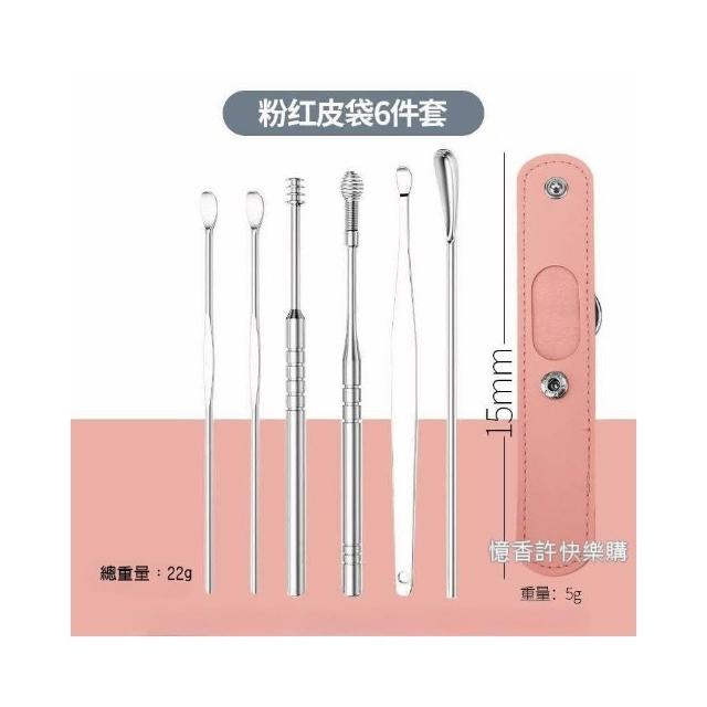 憶香許快樂購 不鏽鋼掏耳勺 6件套 便攜式 螺旋 小皮袋 挖耳勺套裝 採耳工具 挖耳屎神器 挖耳套組 掏耳棒 挖耳棒