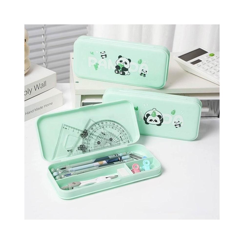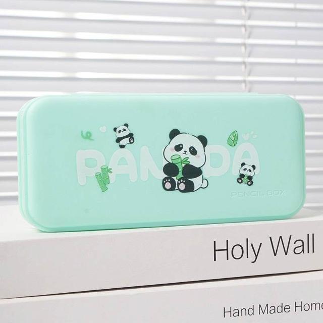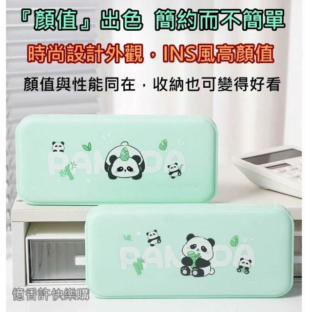 憶香許快樂購 新款 熊貓文具盒 兒童 卡通 可愛 大容量 分格收納盒 高顏值 鉛筆盒 小學生 筆袋 收納盒