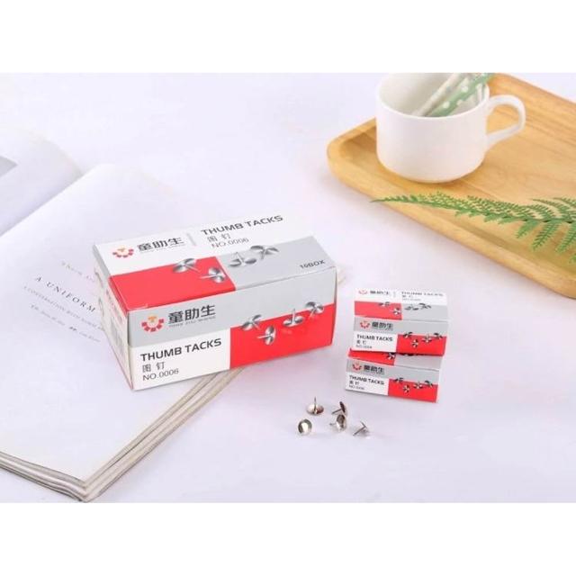 憶香許快樂購 辦公 文具 鍍鎳圖釘 紙盒裝 平頭10mm 圖釘 80粒 沙發釘 牆紙釘 裝飾 強力固定 工字釘 大頭釘
