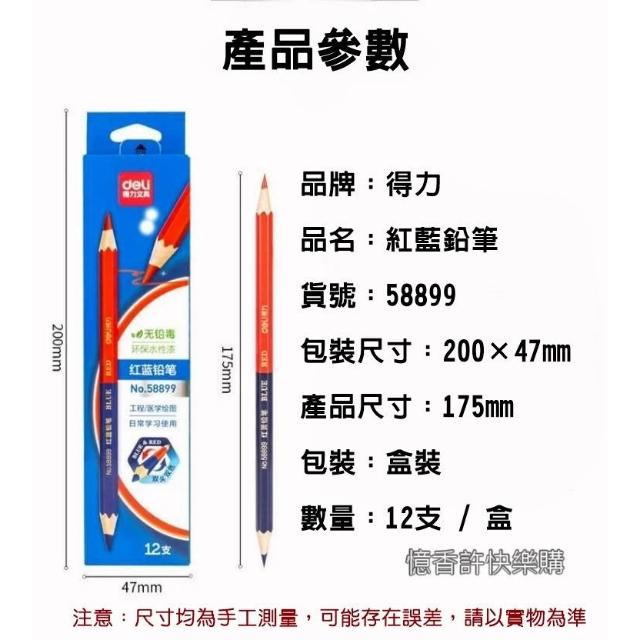 Deli 得力憶香許快樂購 得力 58899 雙頭 紅藍鉛筆 工程繪畫筆 雙色 圖稿鉛筆 標記 筆記 鉛筆 木工 鉛筆 標圖繪圖