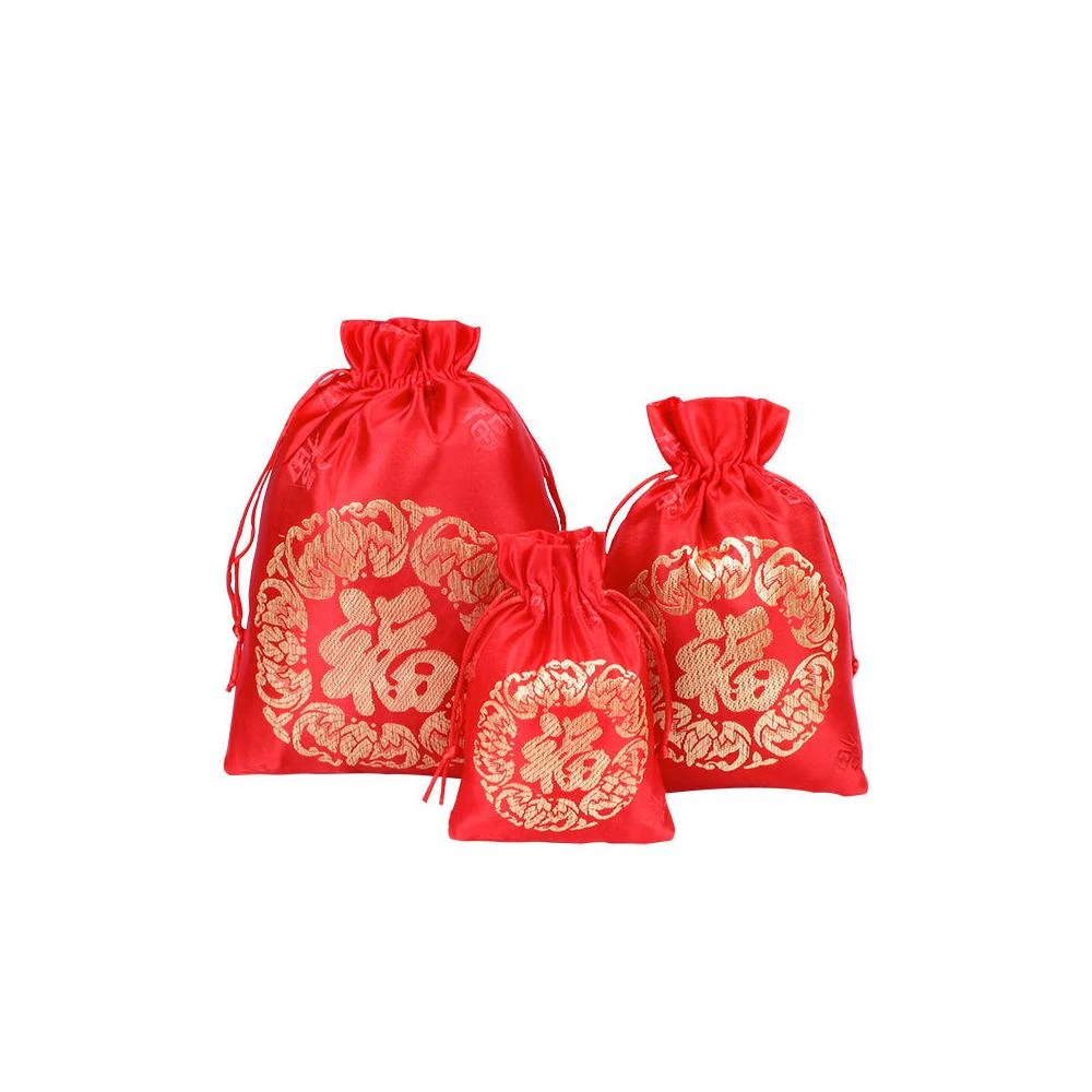 憶香許快樂購 中國風 錦緞 紅色福字袋 抽繩 婚禮喜慶 喜糖袋 珠寶首飾 包裝 福袋 束口袋 錦囊袋 文玩袋 批發