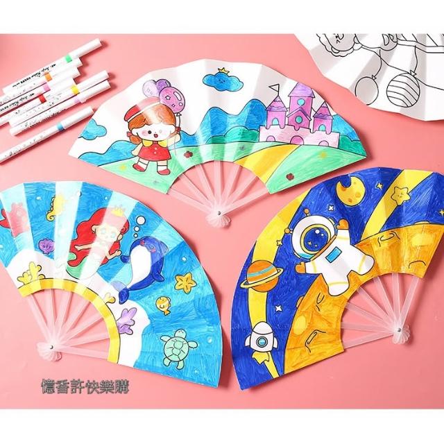 憶香許快樂購 兒童 手作 DIY 塗鴉 七折扇 扇子 繪畫 可愛卡通 填色 折扇 幼兒園 手繪扇子 材料包 摺疊 勞作