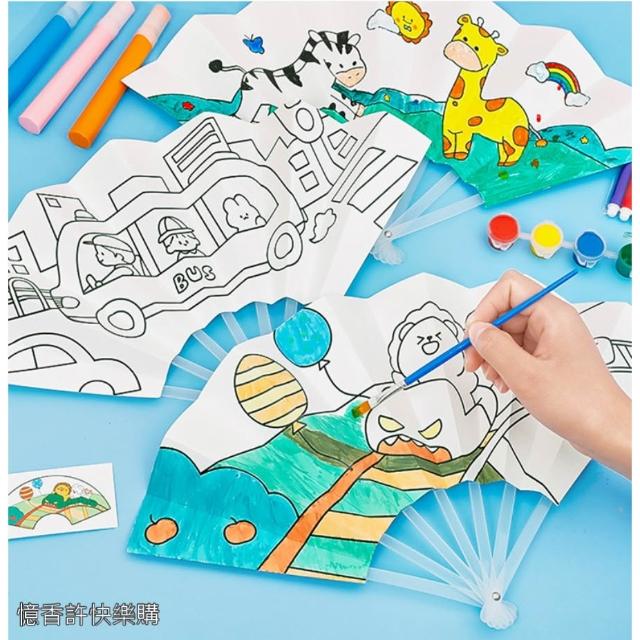 憶香許快樂購 兒童 手作 DIY 塗鴉 七折扇 扇子 繪畫 可愛卡通 填色 折扇 幼兒園 手繪扇子 材料包 摺疊 勞作