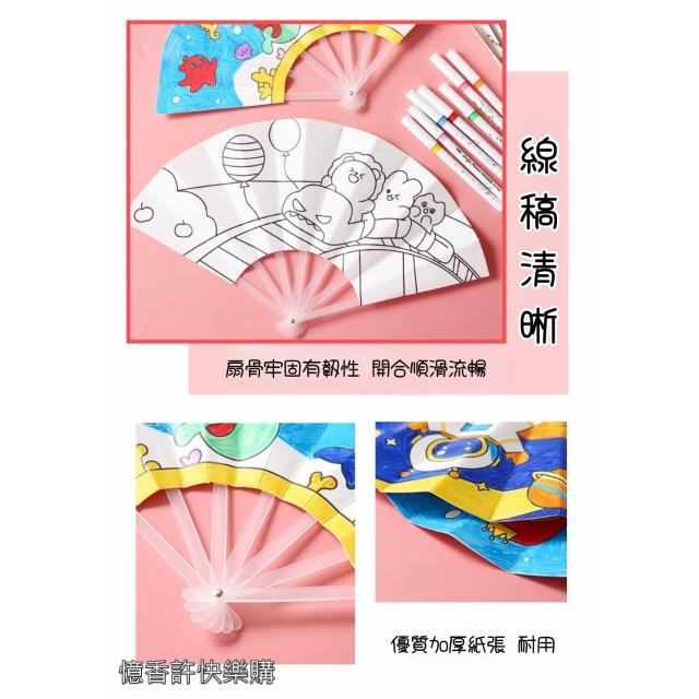 憶香許快樂購 兒童 手作 DIY 塗鴉 七折扇 扇子 繪畫 可愛卡通 填色 折扇 幼兒園 手繪扇子 材料包 摺疊 勞作