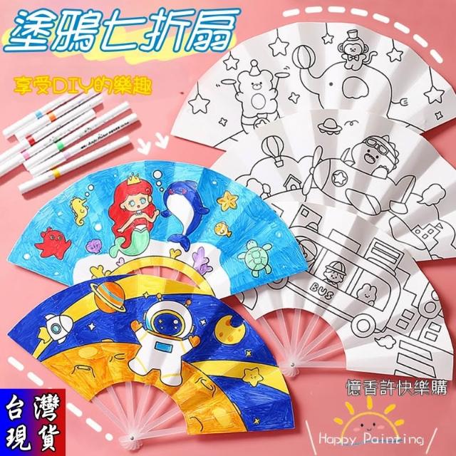憶香許快樂購 兒童 手作 DIY 塗鴉 七折扇 扇子 繪畫 可愛卡通 填色 折扇 幼兒園 手繪扇子 材料包 摺疊 勞作