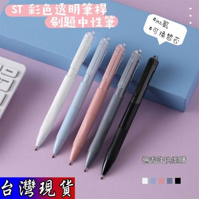憶香許快樂購 彩色 透明桿 按動 辦公 刷題 中性筆 ST 黑芯 辦公中性筆 簽字筆 獎品 禮物 書寫 考試 學生 順滑