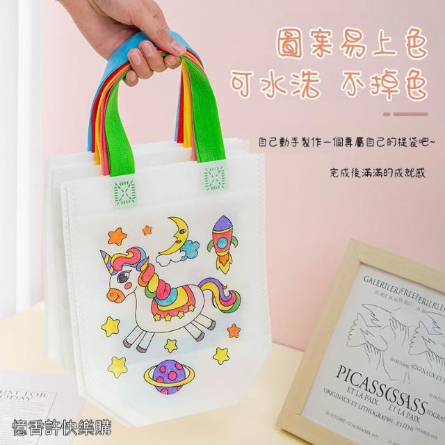 憶香許快樂購 創意 塗鴉 不織布手提袋 環保袋 兒童 手工 DIY 材料包 繪畫 著色 環保 無紡布 幼兒園 填色 手繪