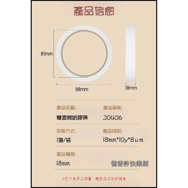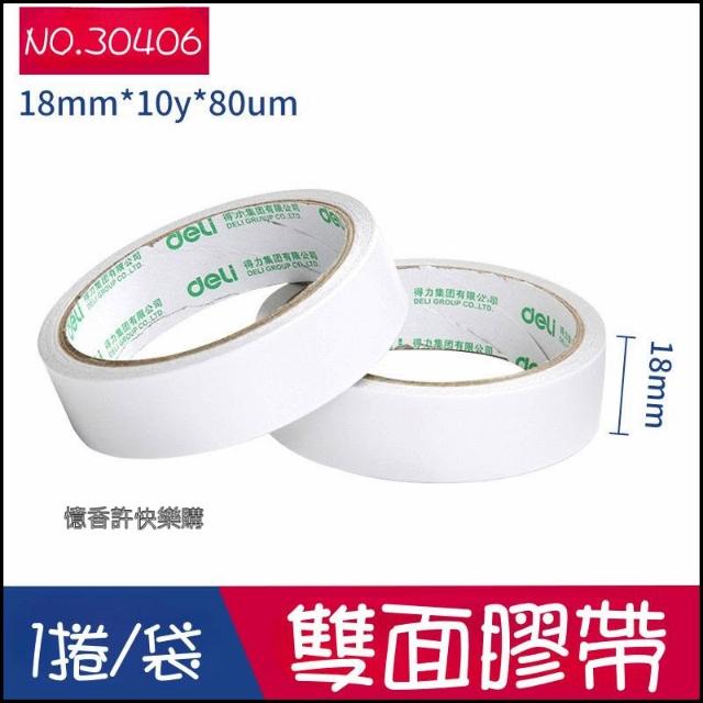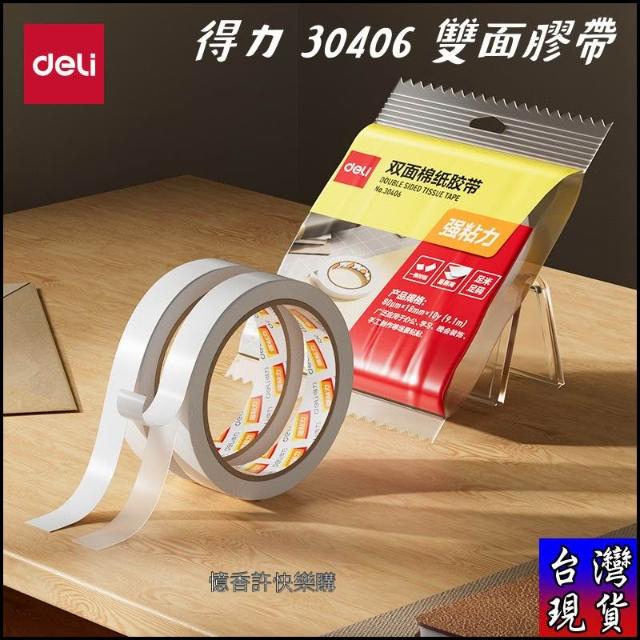 Deli 得力憶香許快樂購 得力 30406 雙面膠 棉紙膠帶 雙面膠帶 18mm*10y* 80um 雙面膠條 手工 黏膠 1捲/袋