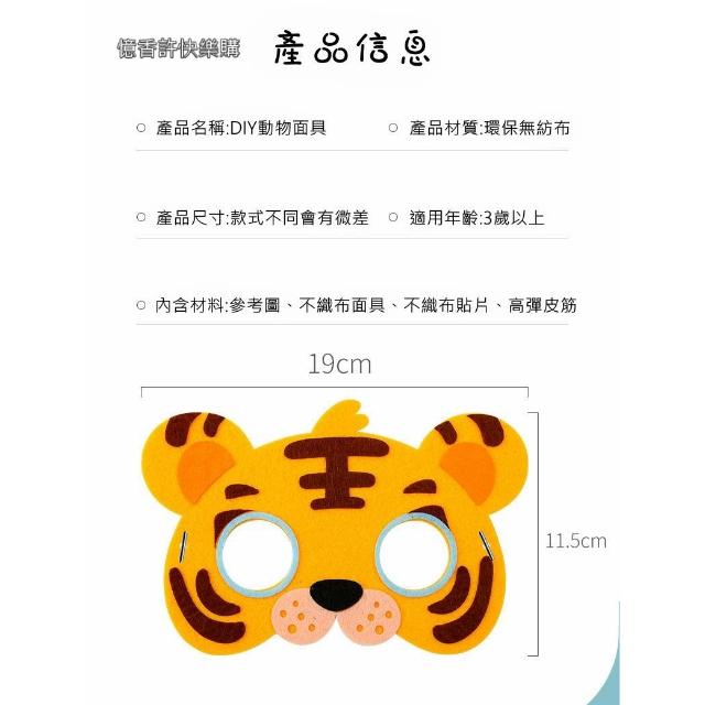 憶香許快樂購 手作 不織布 DIY 動物 面具 兒童 玩具 材料包 幼兒園 親子活動 表演 玩具 節慶 派對 裝扮道具