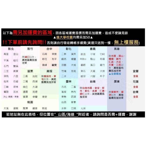 - 針對大型商品(包括:大型家電、家具床墊、健身按摩器材、車類...等),商店將於完成收款確認後,一天內〈不含例假日〉將會有專人與您確認相關配送細節等的聯繫。偏遠地區、樓層費及其它加價費用,皆由商店於約定配送時一併告知,商店將保留出貨與否的權利。