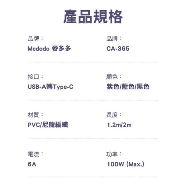 Mcdodo麥多多 晶體系列 6A USB-A to Type-C 透明快充線1.2M