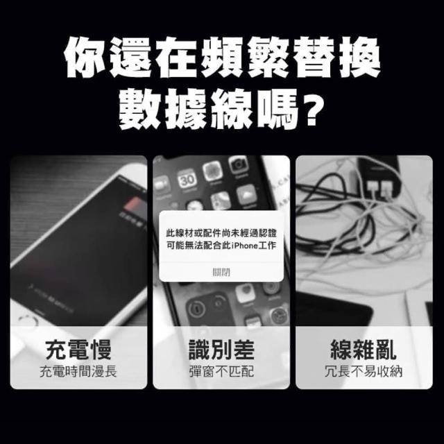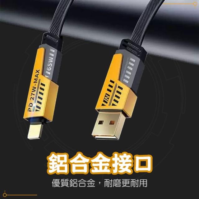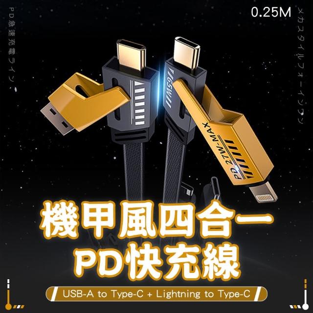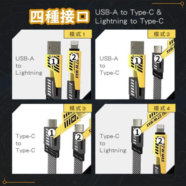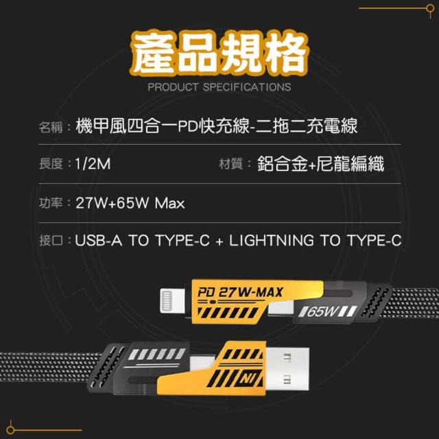 SHOWHAN機甲風 四合一 PD27W+65W 二拖二 USB-A to TC + Lightning to Type-C快充線25cm