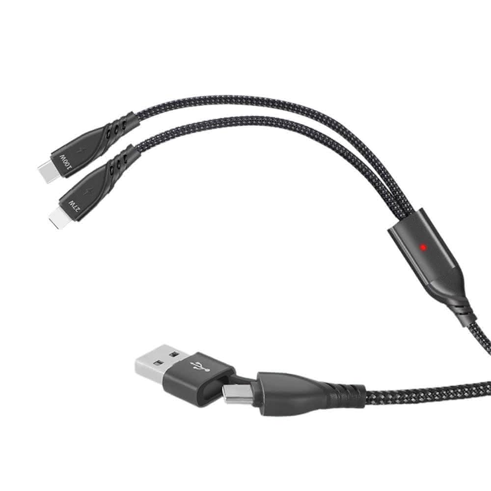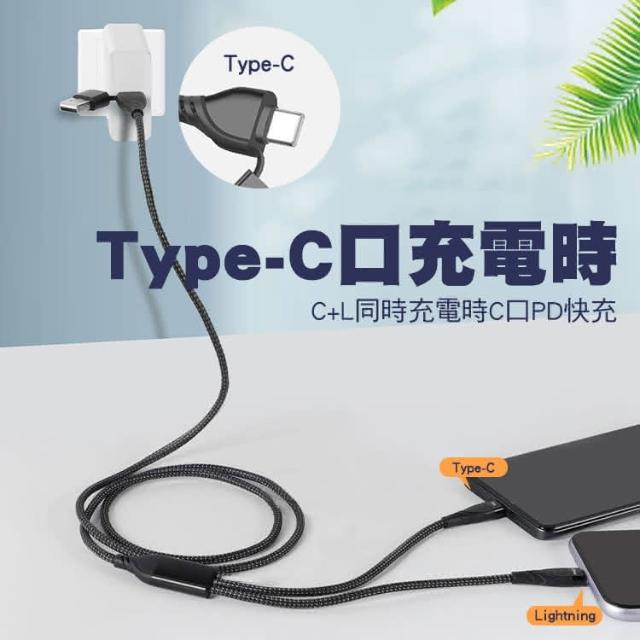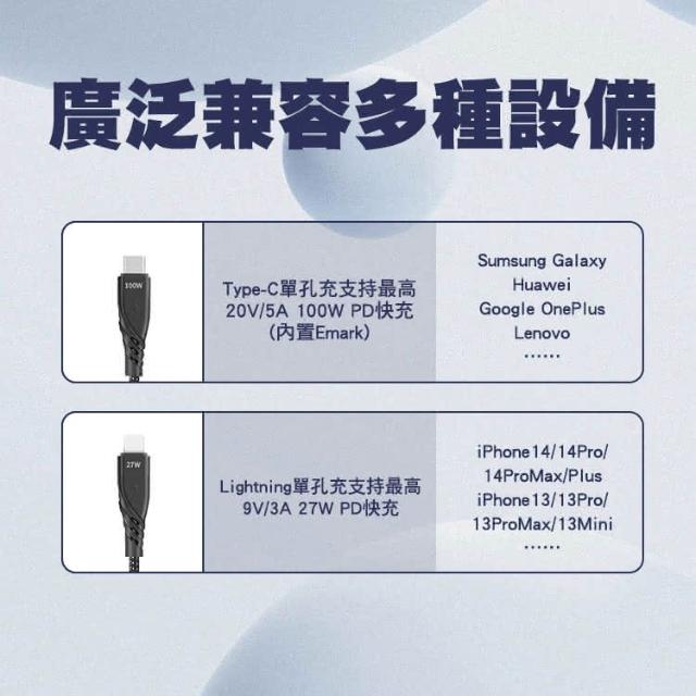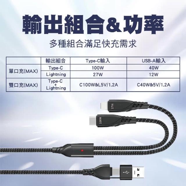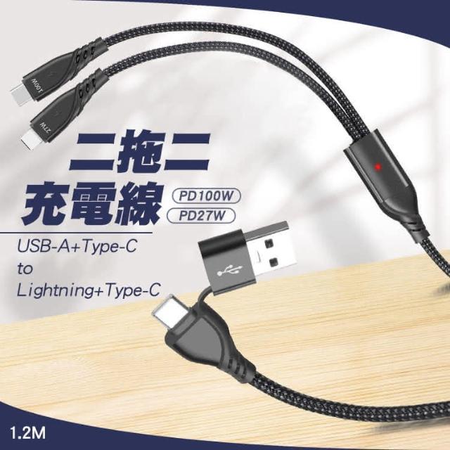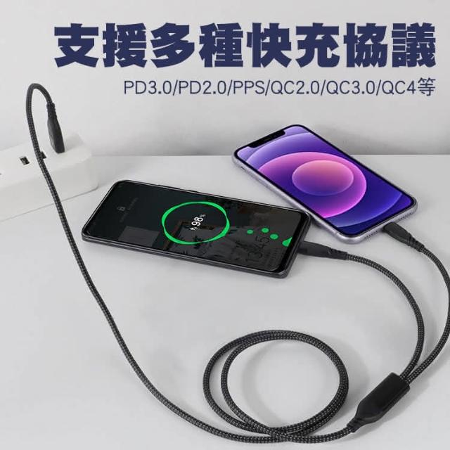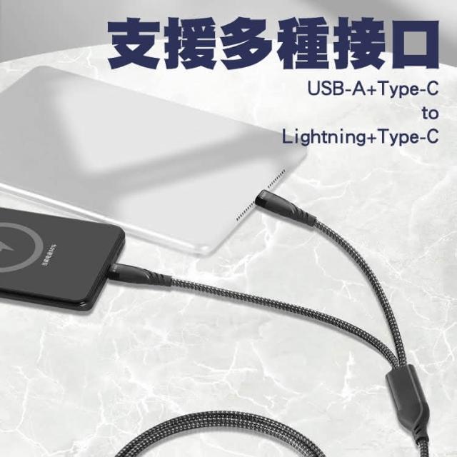 SHOWHANPD 100W+27W 二拖二 USB-A+Type-C to Lightning+Type-C充電線1.2M 適用安卓 iPhone15