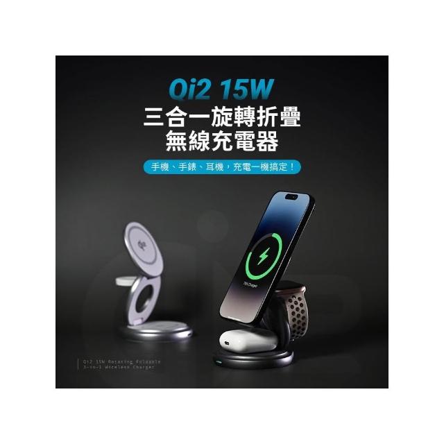 LUMO Qi2 15W 三合一無線折疊充電器
