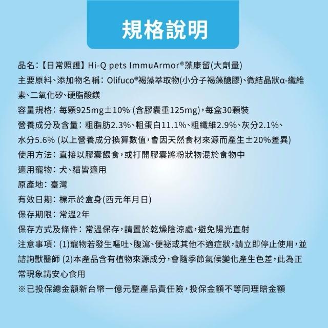 Hi-Q Pets樂樂家速達🚀-日常照護型new藻康留大劑量L-30顆装x3入
