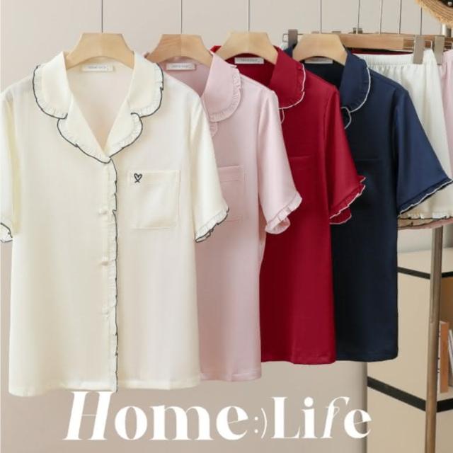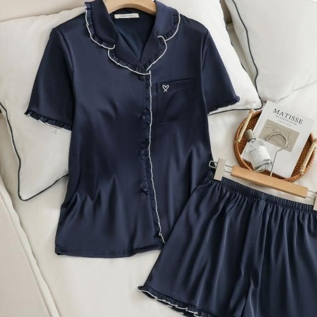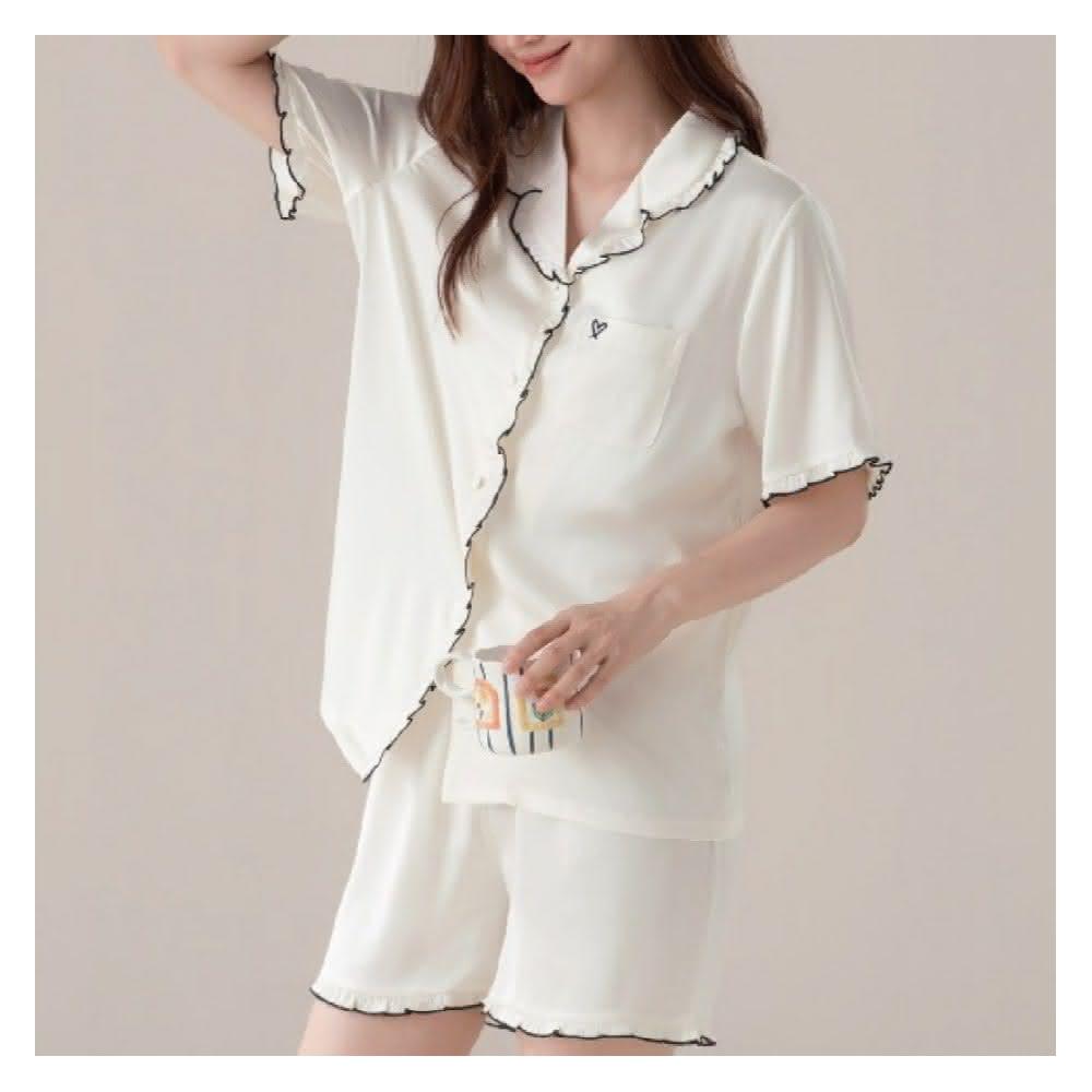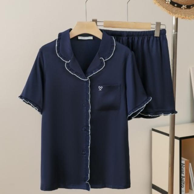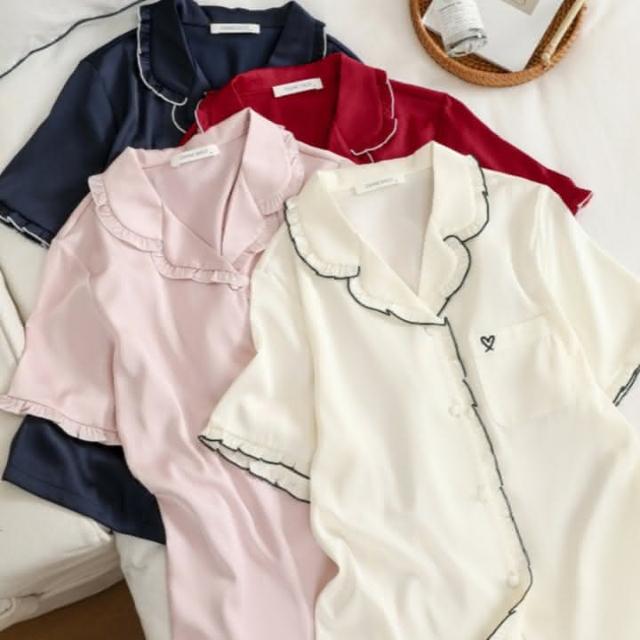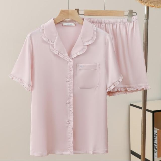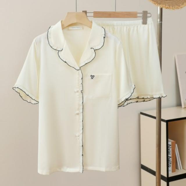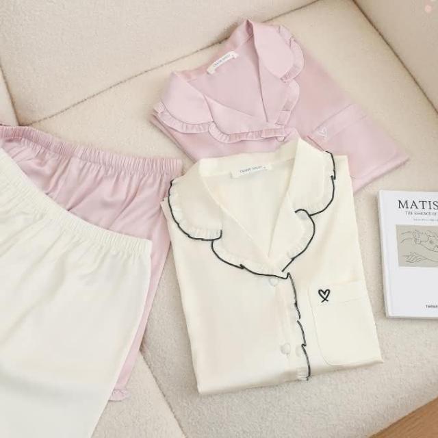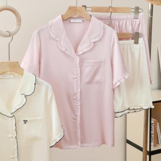 7PuPu🧸法式甜蜜愛心夏季居家服(冰絲睡衣/夏季睡衣/夏天睡衣/短袖+短褲/女生衣著/居家服/女生睡衣)