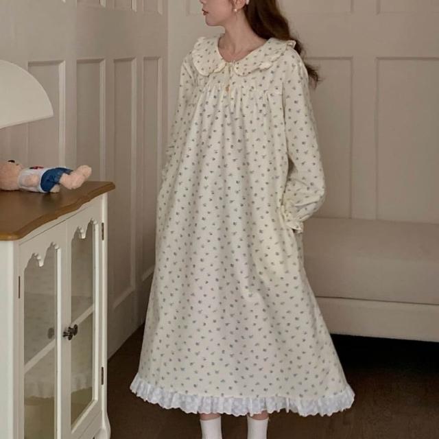 7PuPu🧸微甜花語秋冬睡裙/秋天睡衣/春天睡衣/冬天睡衣/長裙/裙子/女生睡裙
