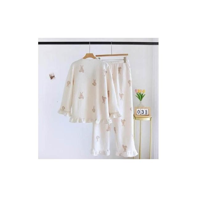 7PuPu🧸萌吱吱奶油兔冬天睡衣/秋天睡衣/冬天睡衣/秋冬/長袖+長褲/居家服/睡衣/保暖