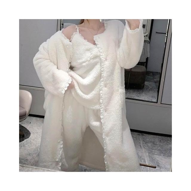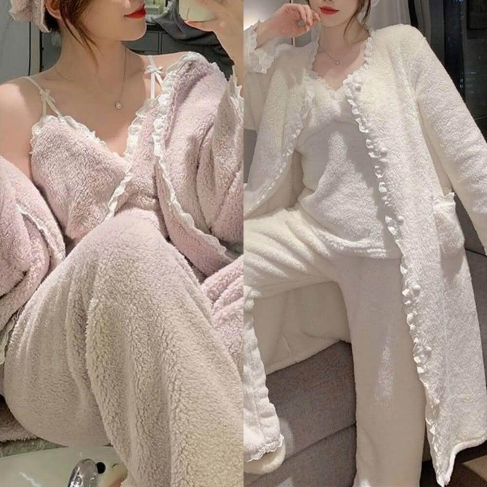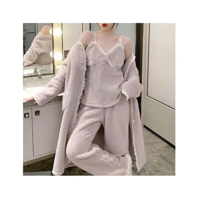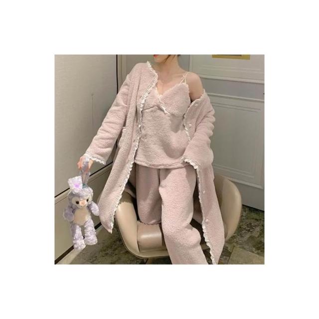 7PuPu🧸法式小性感三件套冬天睡衣(冬天睡衣/女裝/冬季睡衣/女生睡衣/保暖/背心+長褲+外袍/防寒/居家服)