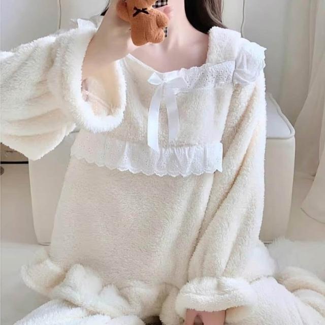 7PuPu🧸小露香肩公主冬天居家服/睡裙(冬天睡衣/保暖/女生睡褲/冬天女裝/長裙/女生睡衣/睡裙)