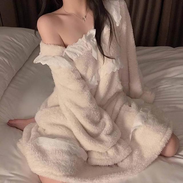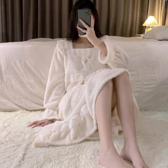7PuPu🧸小露香肩公主冬天居家服/睡裙(冬天睡衣/保暖/女生睡褲/冬天女裝/長裙/女生睡衣/睡裙)