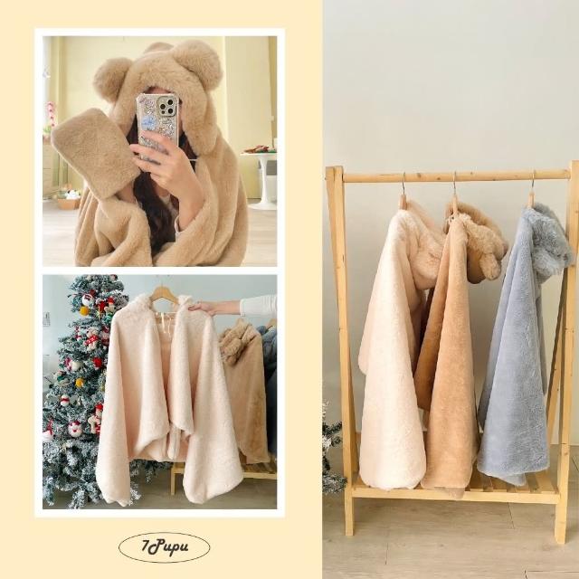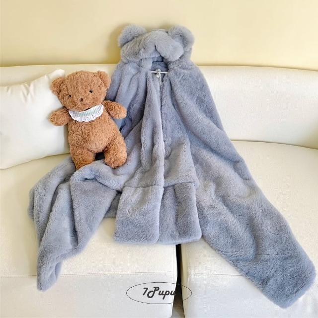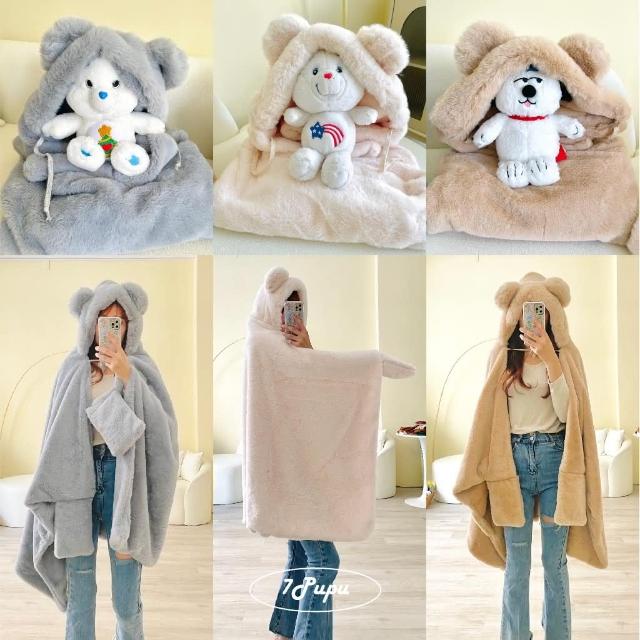 7PuPu🧸成人+兒童款泰迪熊厚實披肩毯(📸實拍/毯子/毛毯/空調毯/連帽毯/小孩披肩毯/披肩毯/保暖/交換禮物)