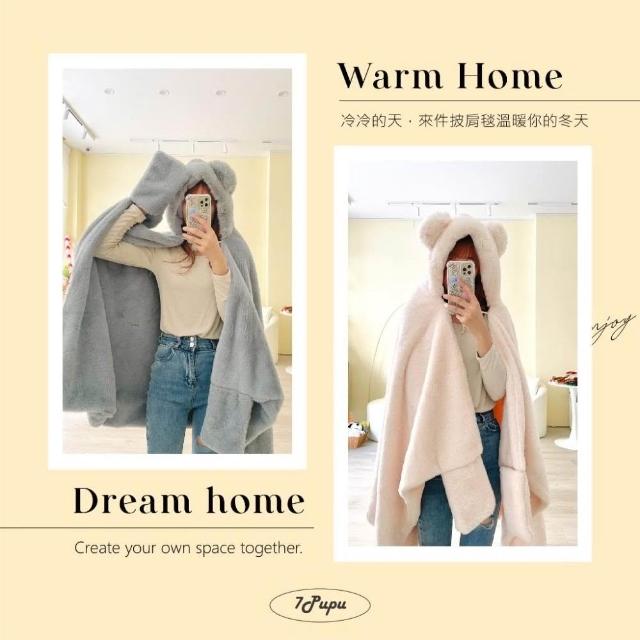 7PuPu🧸泰迪熊厚實披肩毯(📸實拍/毯子/毛毯/空調毯/連帽毯/小孩披肩毯/披肩毯/保暖/交換禮物)