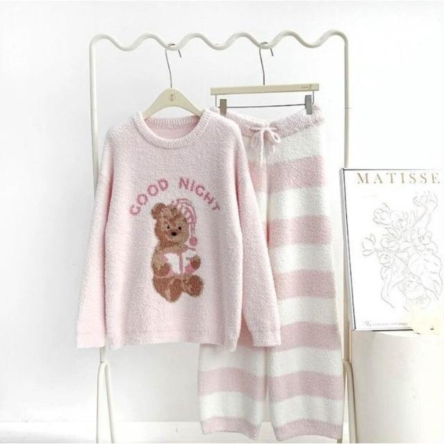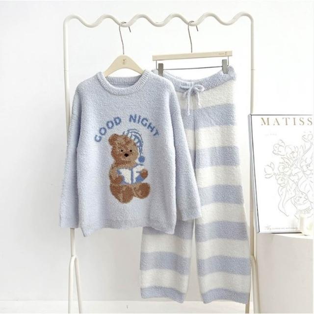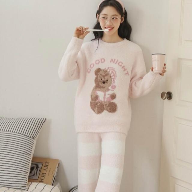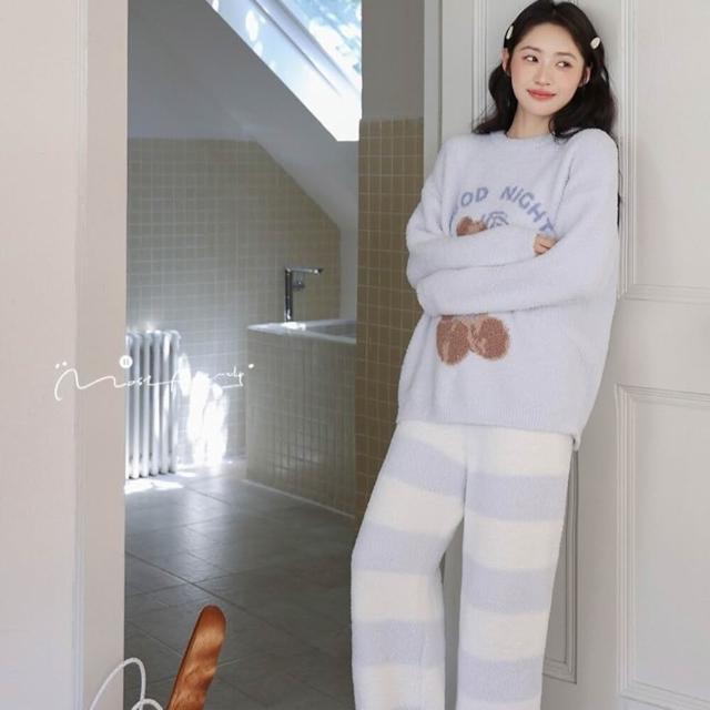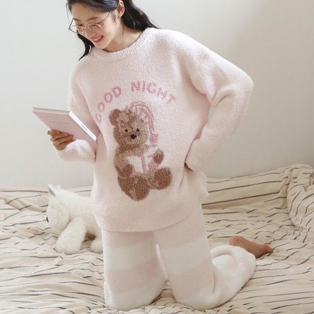 7PuPu🧸晚安故事小熊半邊絨冬天睡衣(冬天居家服/保暖睡衣/女生睡衣/冬季睡衣/睡褲)