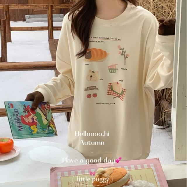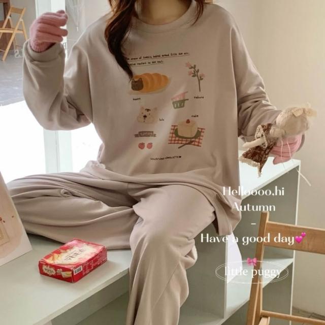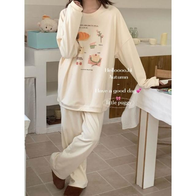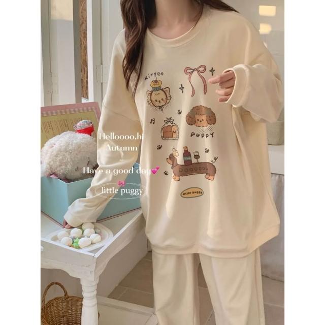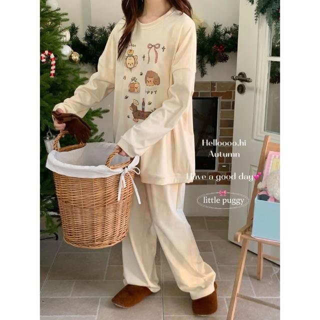 7PuPu🧸法式麵包小狗德絨冬天睡衣(冬天居家服/保暖睡衣/女生睡衣/衛生衣/睡褲/長袖睡衣)