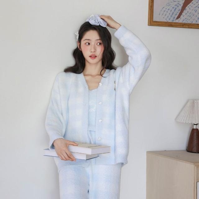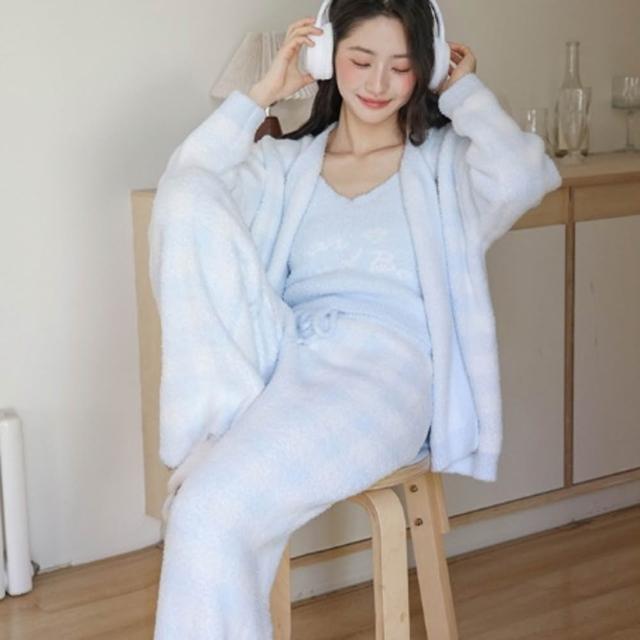 7PuPu🧸雲朵奶昔小熊半邊絨冬天睡衣三件套(冬天居家服/保暖睡衣/女生睡衣/冬季睡衣/睡褲)