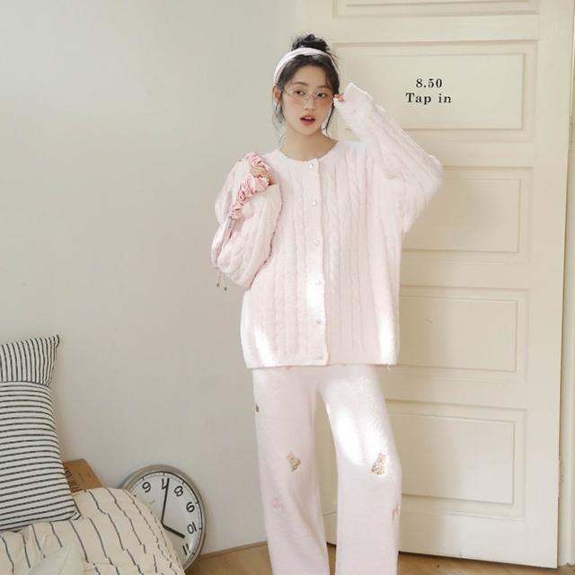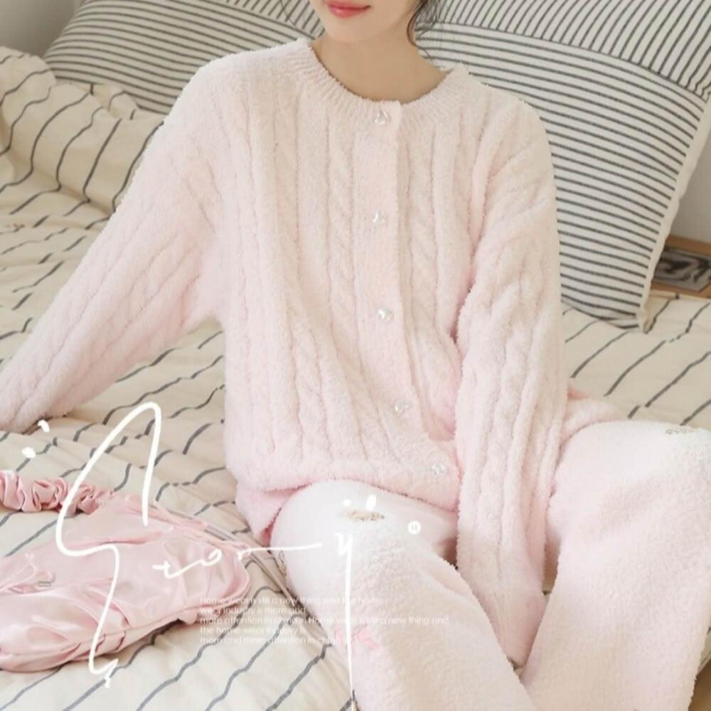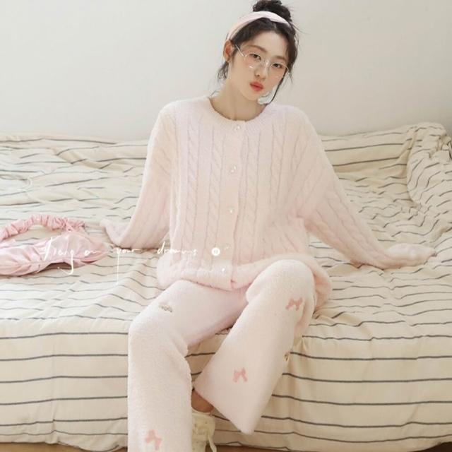 7PuPu🧸甜甜草莓泰迪半邊絨冬天睡衣(秋天睡衣/冬天睡衣/保暖/長袖+長褲/女生睡衣/居家服)
