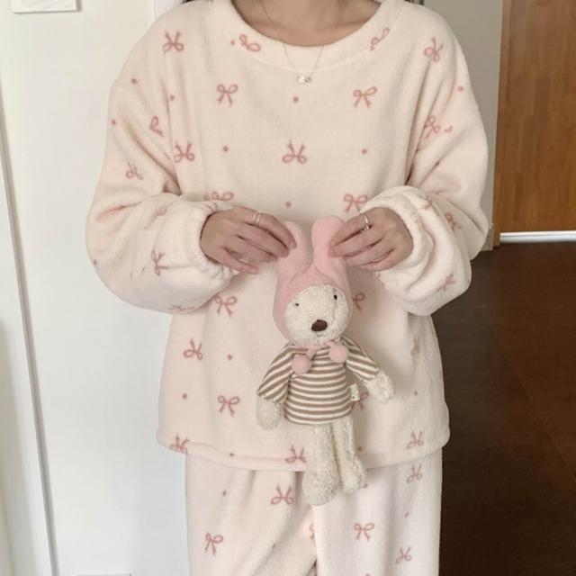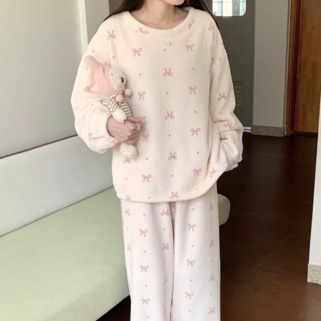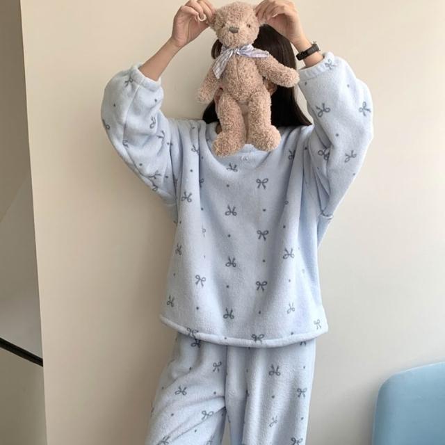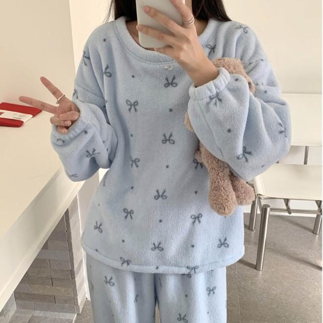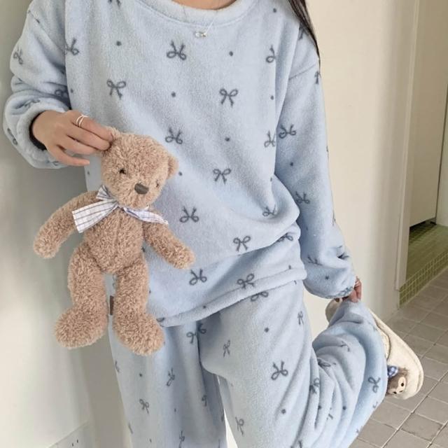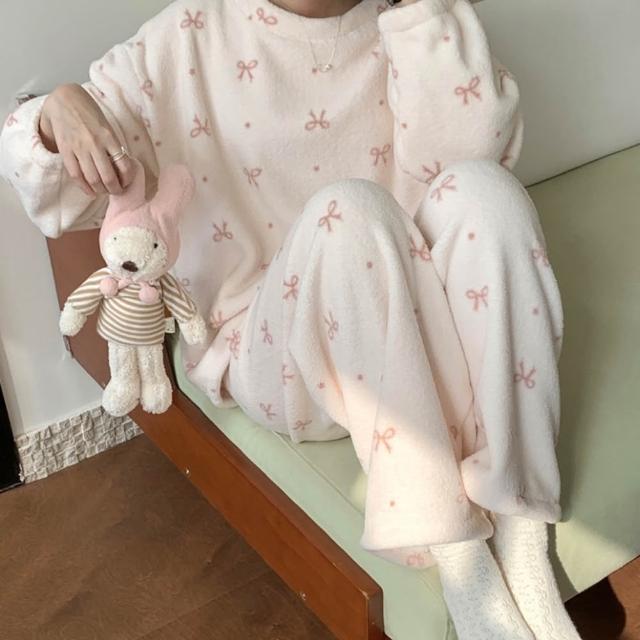- 可愛蝴蝶結雪粒絨冬天居家服