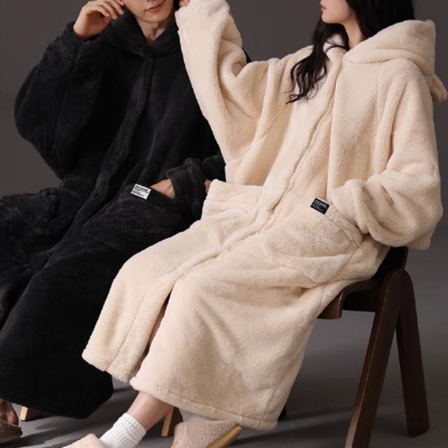 7PuPu🧸牛奶糖♡黑可可熊熊情侶冬天加厚連帽睡袍(冬天睡衣/長袍/女生睡衣/情侶睡衣/男生睡衣)
