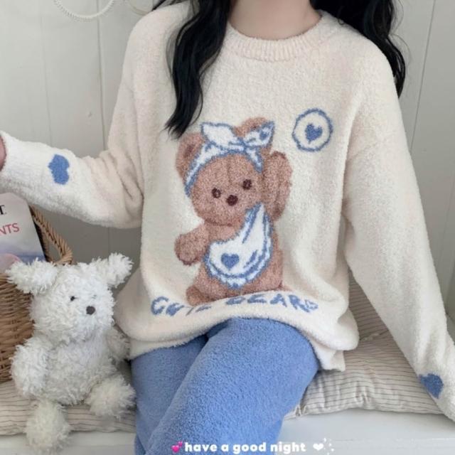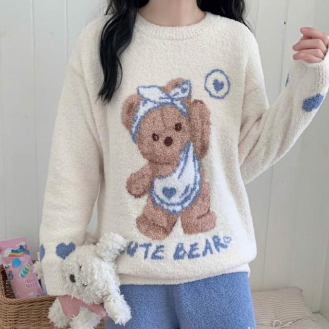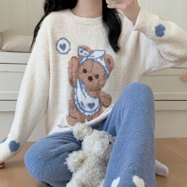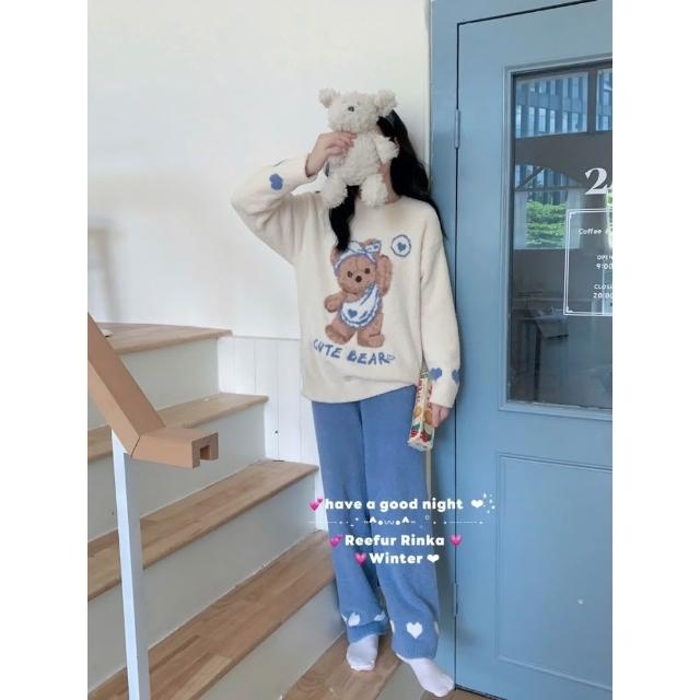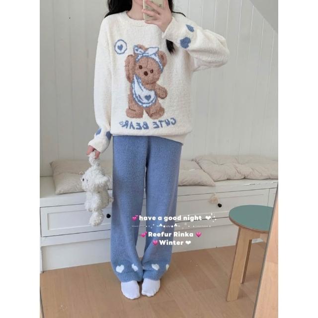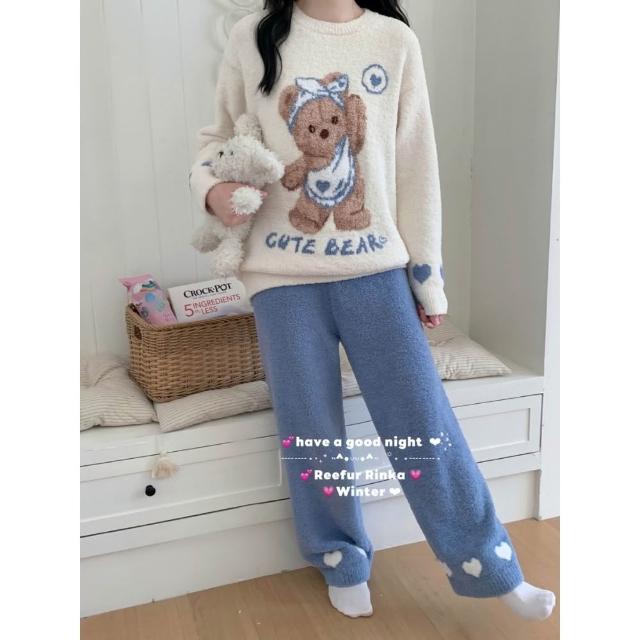 7PuPu🧸早安小熊半邊絨冬天睡衣(冬天居家服/保暖睡衣/女生睡衣/冬季睡衣/睡褲/居家服)