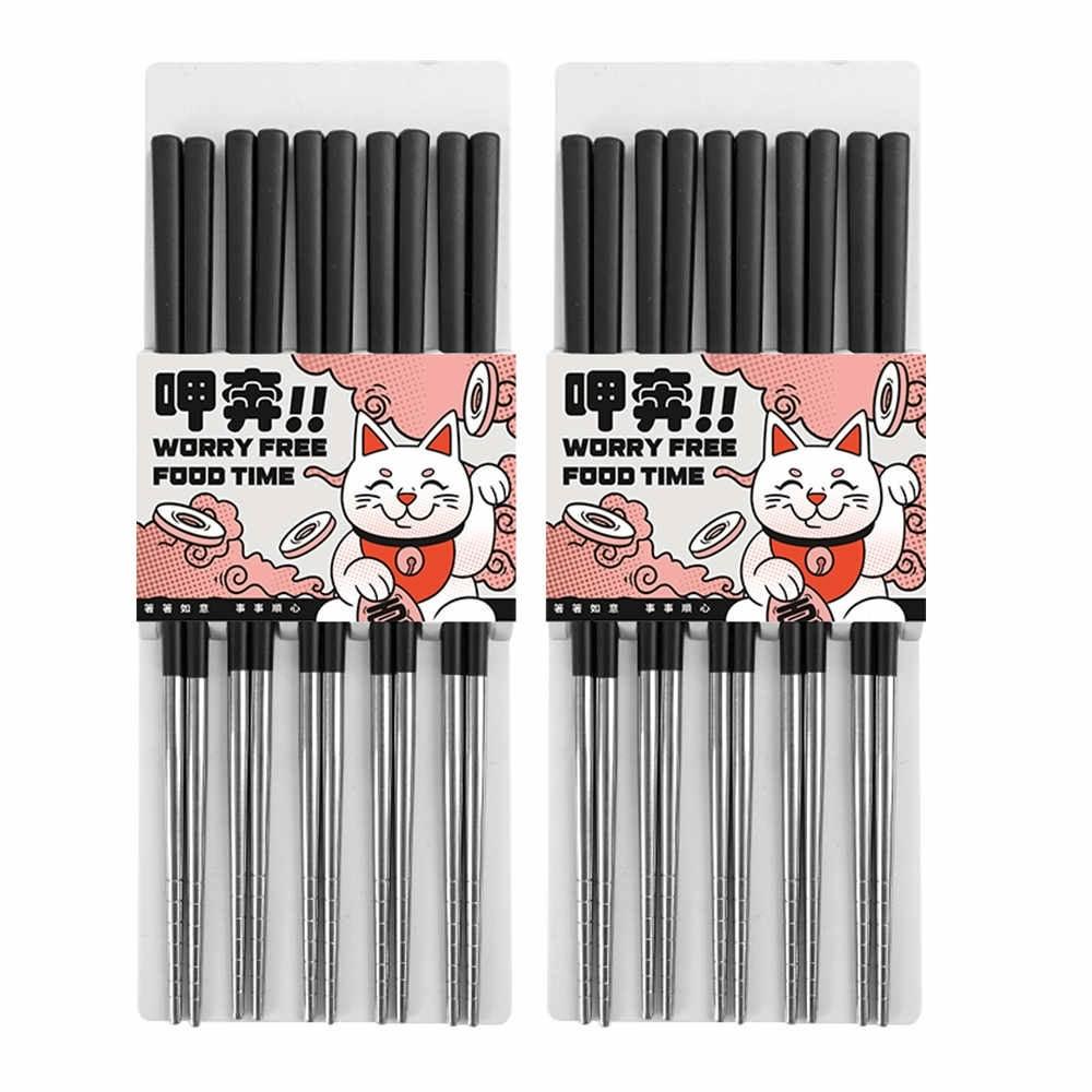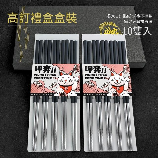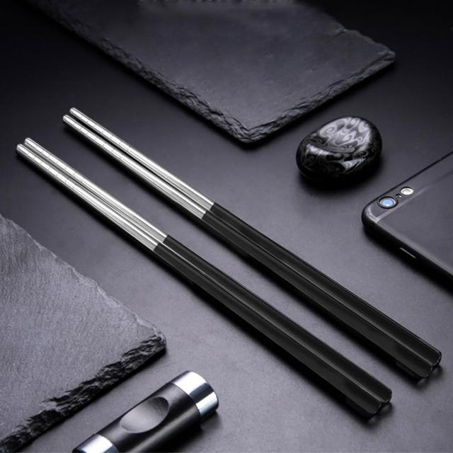 丸石五金 不繡鋼筷 衛生筷 防滑筷 環保筷子 衛生筷 高檔筷子 環保筷 公筷禮盒 黑銀10雙690-CPSBS230-10