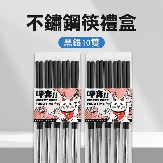 丸石五金 不繡鋼筷 衛生筷 防滑筷 環保筷子 衛生筷 高檔筷子 環保筷 公筷禮盒 黑銀10雙690-CPSBS230-10