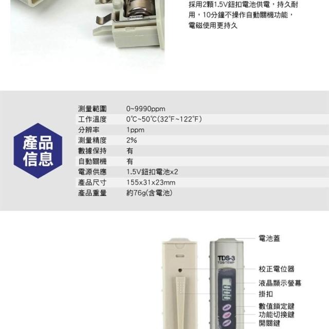 數位水質檢測儀 TDS筆 ppm水質分析筆 飲用水測試 自來水測試檢測筆 飲用水硬度驗水筆 淨水測試筆690-TDS3+