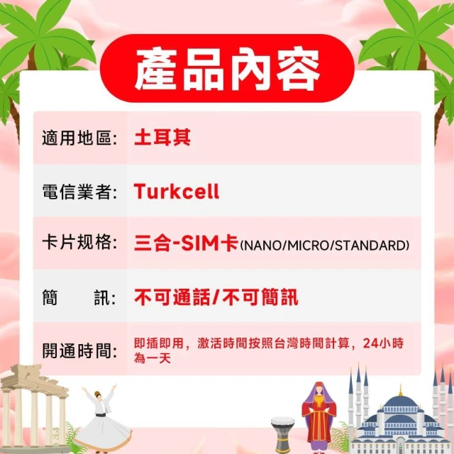 SCT土耳其上網卡 3-30天網卡無限流量吃到飽 土耳其Sim卡高速數據手機網絡卡 土耳其eSIM