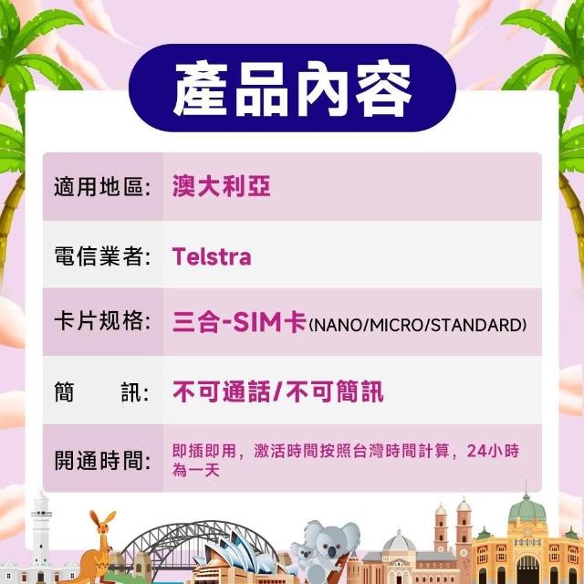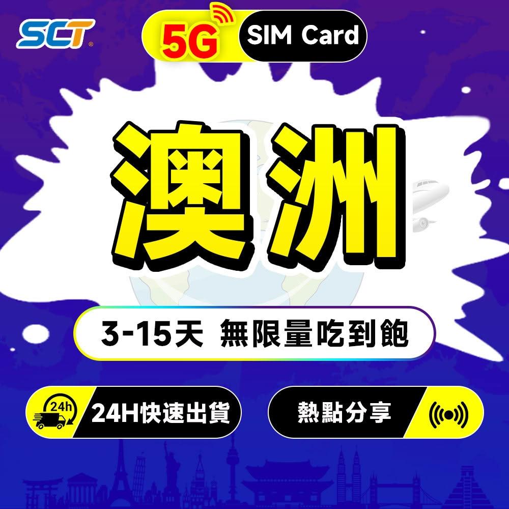 SCT澳洲網卡 澳大利亞上網卡3-15天每日無限流量吃到飽 澳洲旅遊手機SIM卡網絡卡 澳洲上網卡 澳洲eSIM