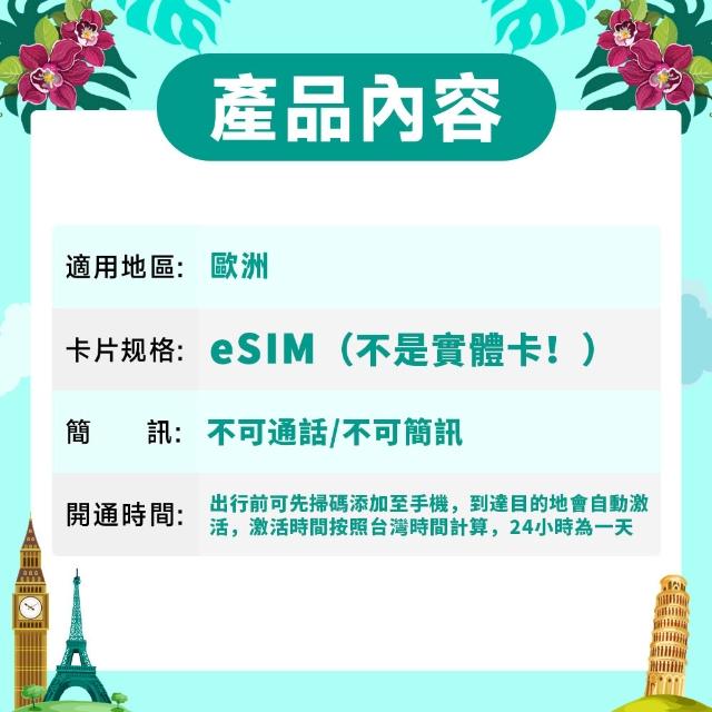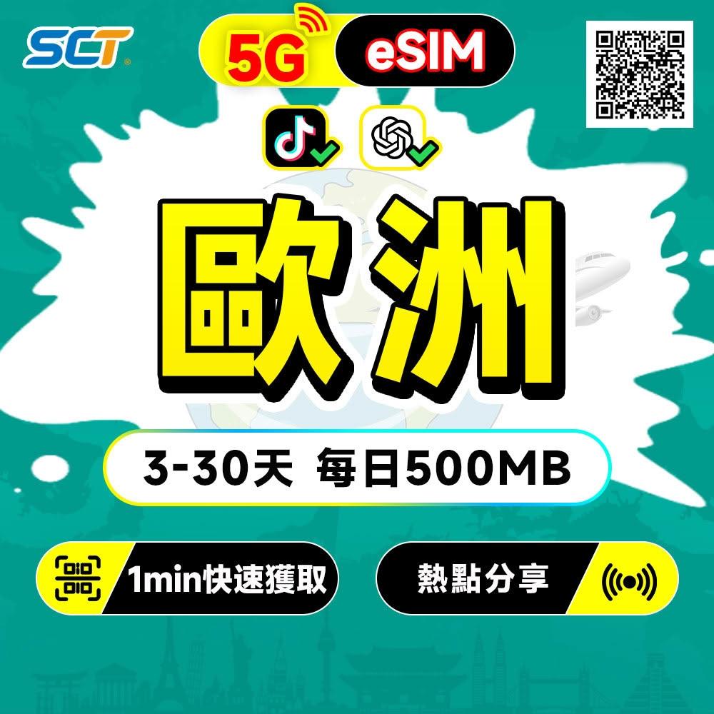 SCT歐洲eSIM 歐洲36國每日高速無限流量吃到飽 法國 英國 德國 義大利 西班牙 土耳其 比利時 吃到飽歐洲esim網卡