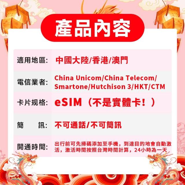 SCT中港澳eSIM 中國大陸eSIM 港澳esim 免翻墙中港澳無限流量吃到飽 支援Line TikTok 熱點分享