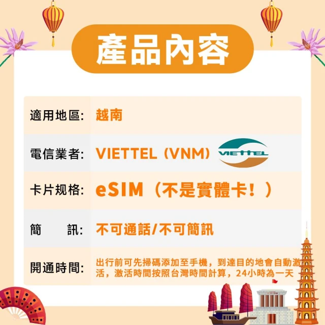 SCT越南eSIM 每天上網吃到飽 高速4G網速無限流量 越南esim網卡 支援熱點分享