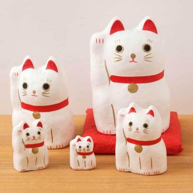 日本進口 Hariko Shika 俄羅斯娃娃 5隻和紙招財貓 招財貓 白貓 擺飾 招財招福擺飾