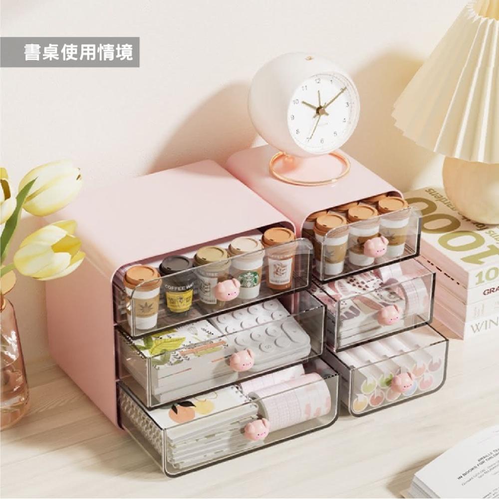 美得像專櫃三層抽屜收納盒(可愛把手 桌上收納櫃 收納架 桌面收納盒 文具收納盒 桌上收納 辦公室收納)