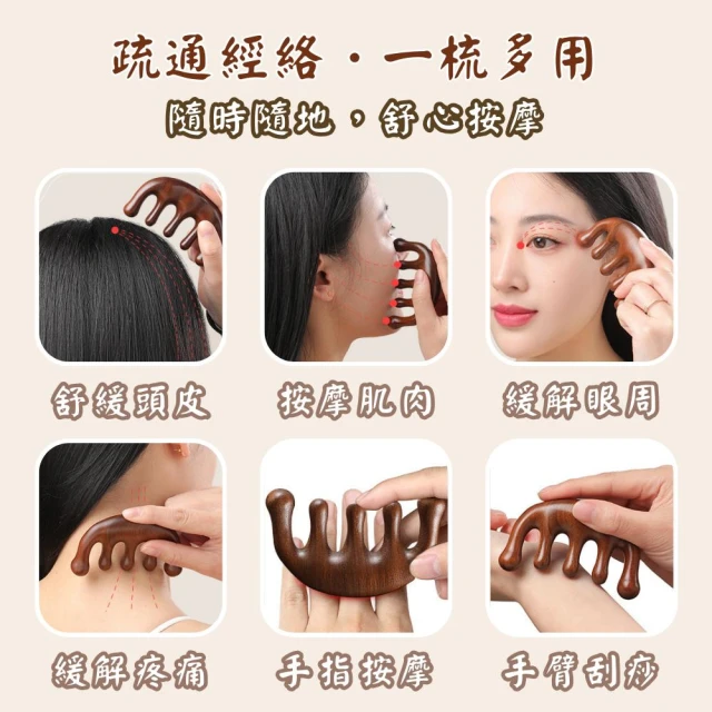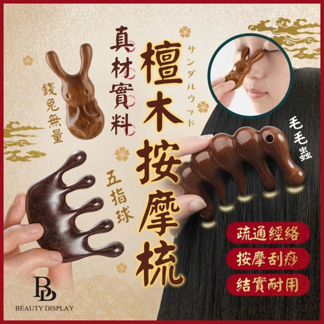 美得像專櫃檀木經絡按摩梳 頭皮按摩 金絲檀 半月梳 刮痧 樱红檀木梳 梳子 穴道按摩 原木梳