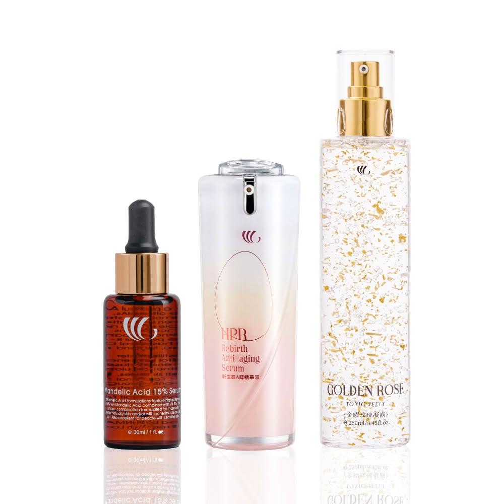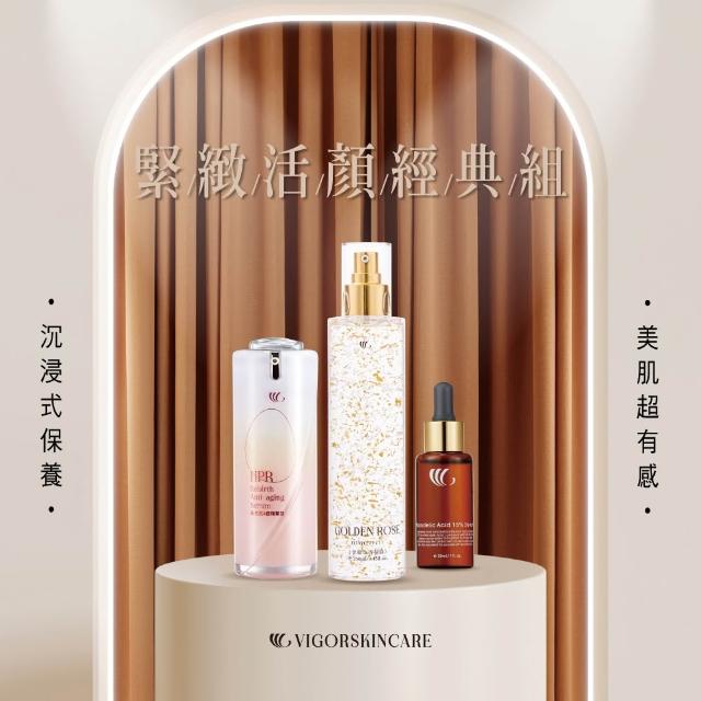 VIGOR 維格抗老三部曲 緊緻活顏經典組(金曜玫瑰凝露+杏仁酸煥膚精華液15%+新生肌A醇精華液)