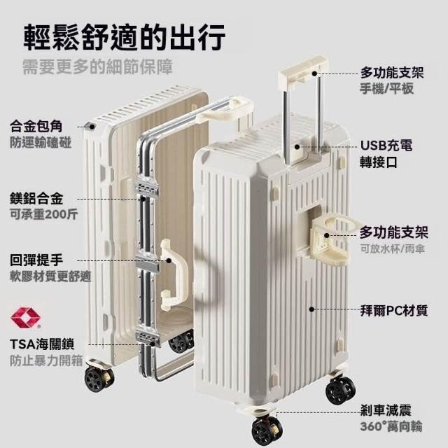 24吋日系鋁框行李箱 大容量 4輪拉桿箱 男女行李箱 減震靜音 剎車萬向輪 旅行箱 托運箱子 胖胖箱(行李箱 旅行箱 登機箱 鋁框 拉鍊 拉桿箱 胖胖箱 大容量)