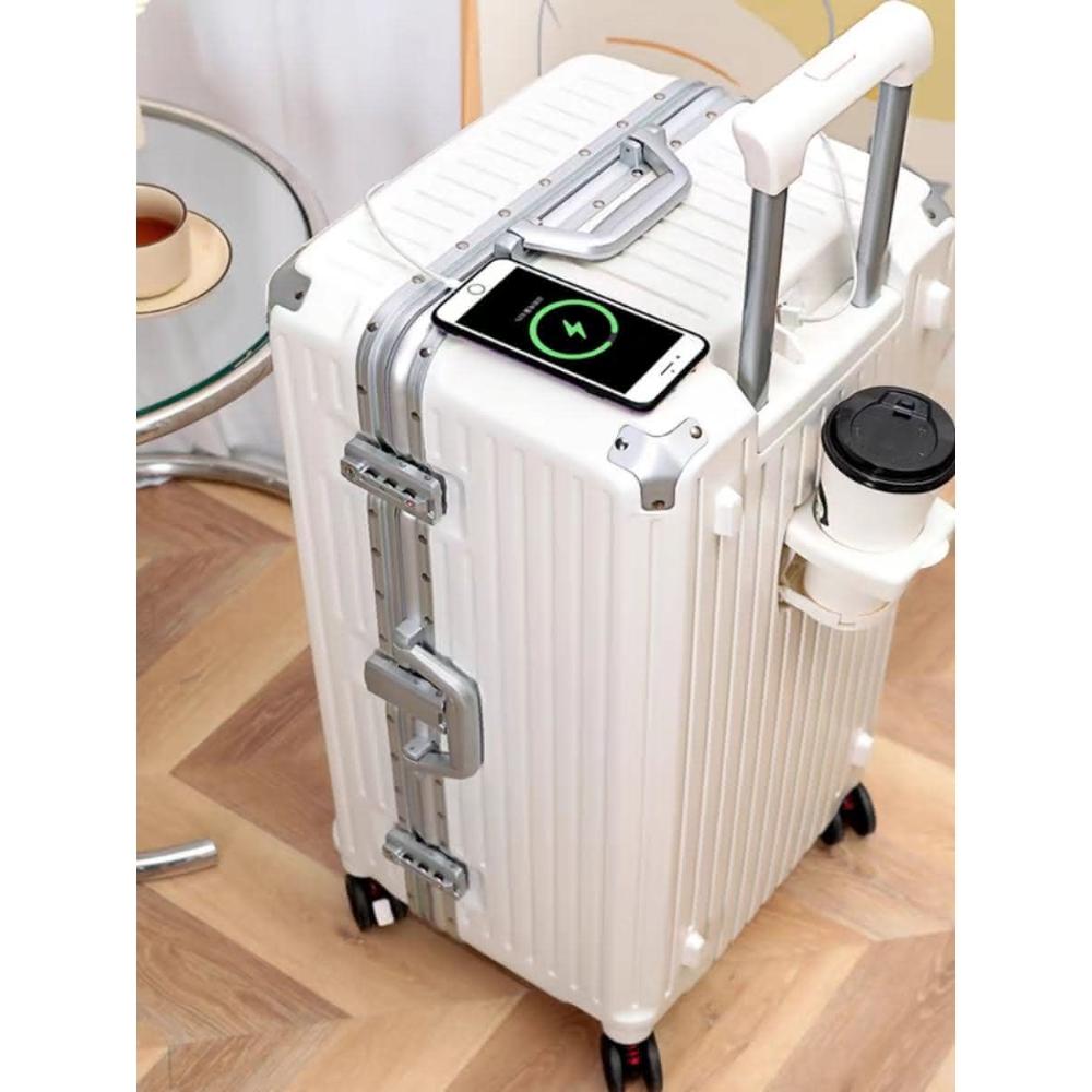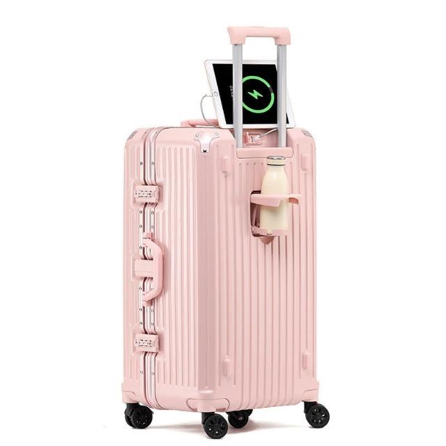 28吋大容量行李箱 36吋加厚鋁框拉桿箱 萬向輪旅行箱長途出國行李箱 杯架款4輪拉桿箱(行李箱 旅行箱 登機箱 鋁框 拉鍊 拉桿箱 胖胖箱 大容量)