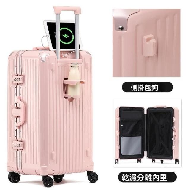 24吋行李箱 旅行箱 拉桿箱 胖胖箱 4輪杯架款拉桿箱(行李箱 旅行箱 登機箱 鋁框 拉鍊 拉桿箱 胖胖箱 大容量)